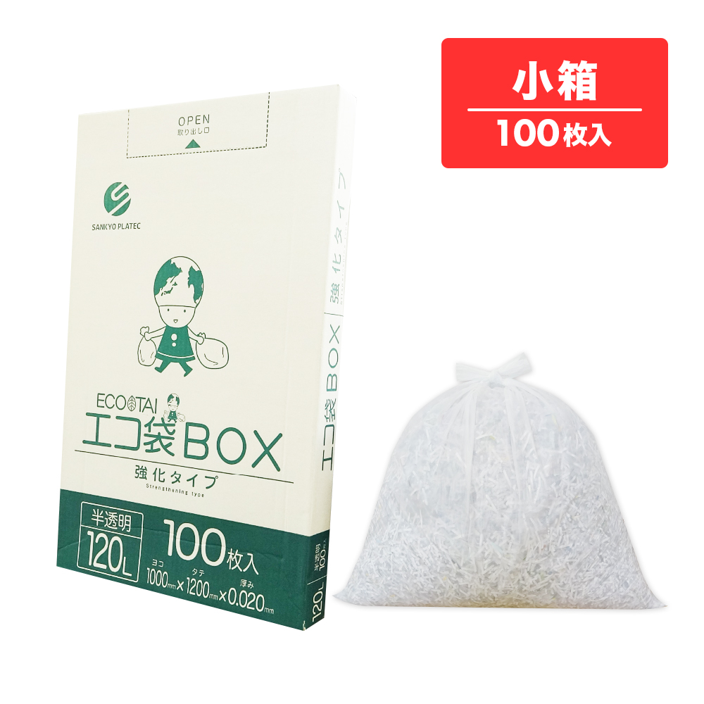 ごみ袋 箱タイプ 120リットル 薄手 半透明 100x120cm 0.020mm厚 100枚 BX-1230kobako / ポリ袋 ゴミ袋 平袋 BOX 箱入り 120l ナチュラル 業務用