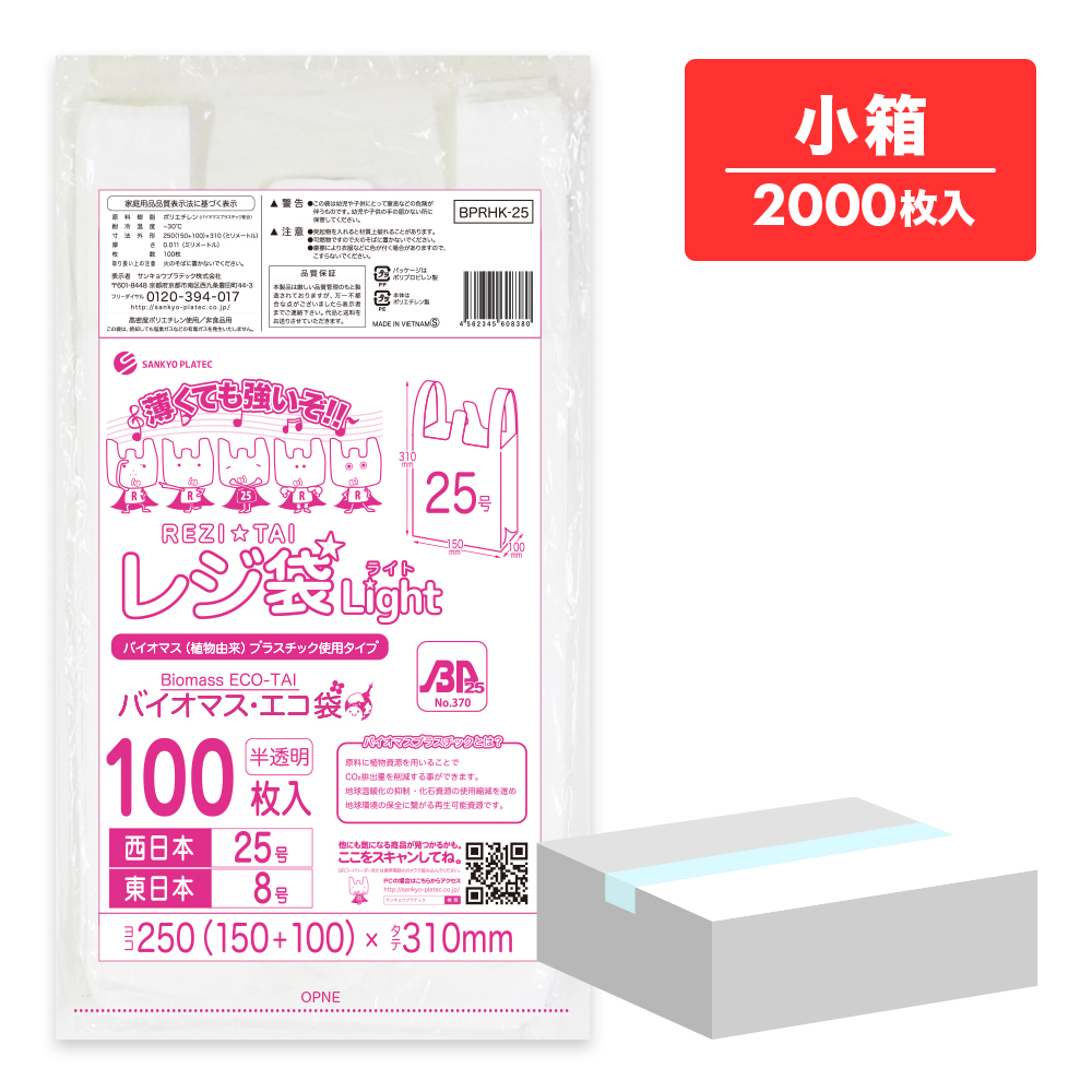バイオマスプラスチック 25%配合 レジ袋 薄手 西日本 25号 (東日本8号) ブロック有 半透明 0.011mm厚 100枚x20冊 BPRHK-25kobako /手さげ袋 買い物袋 袋 SS 業務用