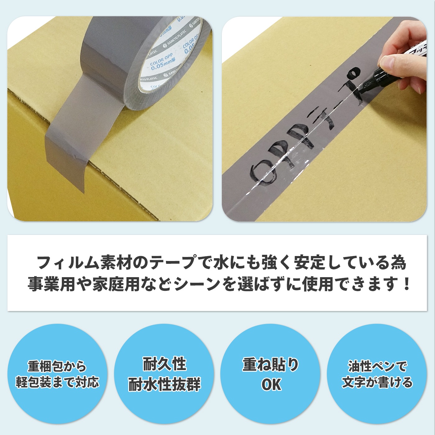 段ボール等にしっかり貼れる!商品の梱包に便利なカラーOPPテープです。