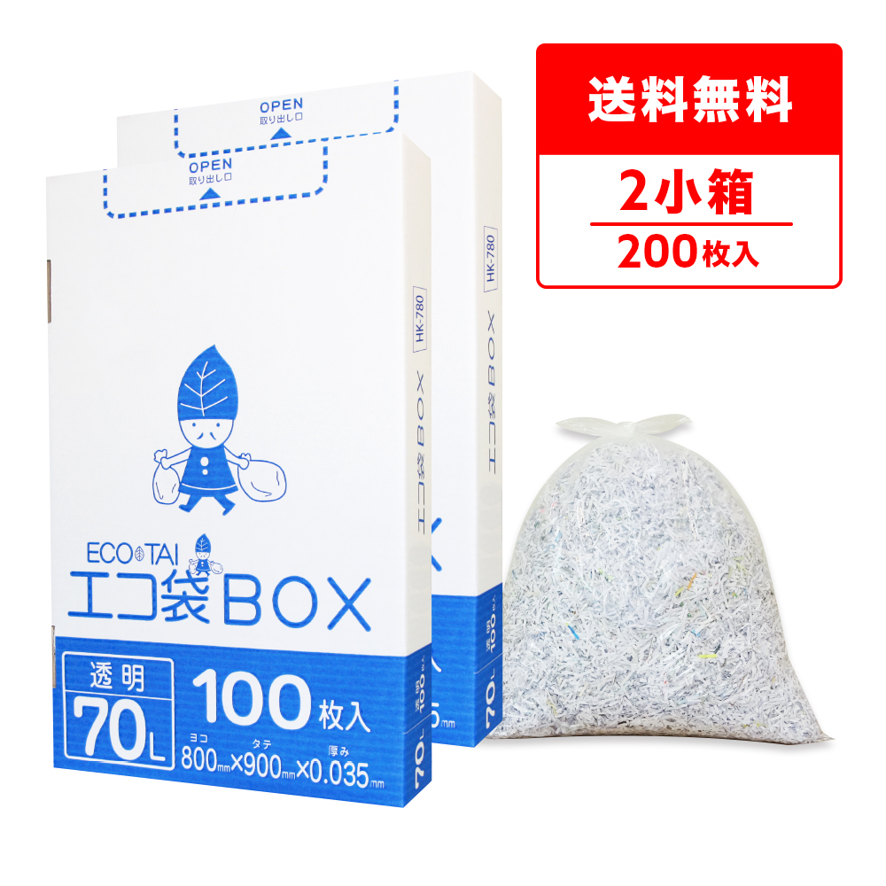 ごみ袋 箱タイプ 70リットル 薄手 透明 80x90cm 0.040mm厚 100枚x2小箱 HKU-730-2kobako ポリ袋 ゴミ袋 平袋 BOX 箱入り 70l クリア 業務用