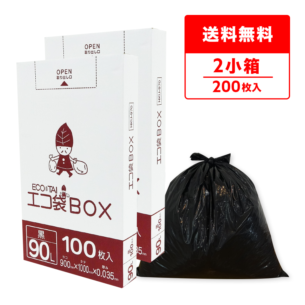 ごみ袋 箱タイプ 90リットル 薄手 黒 90x100cm 0.035mm厚 100枚x2小箱 HKU-970-2kobako ポリ袋 ゴミ袋 平袋 BOX 90l ブラック 業務用