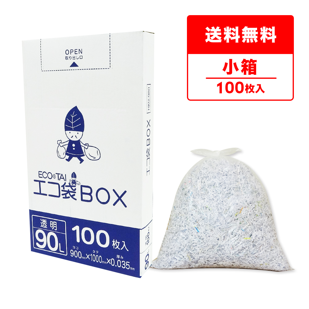 ごみ袋 箱タイプ 90リットル 薄手 透明 90x100cm 0.035mm厚 100枚 HKU-980kobako ポリ袋 ゴミ袋 平袋 BOX 90l クリア 業務用