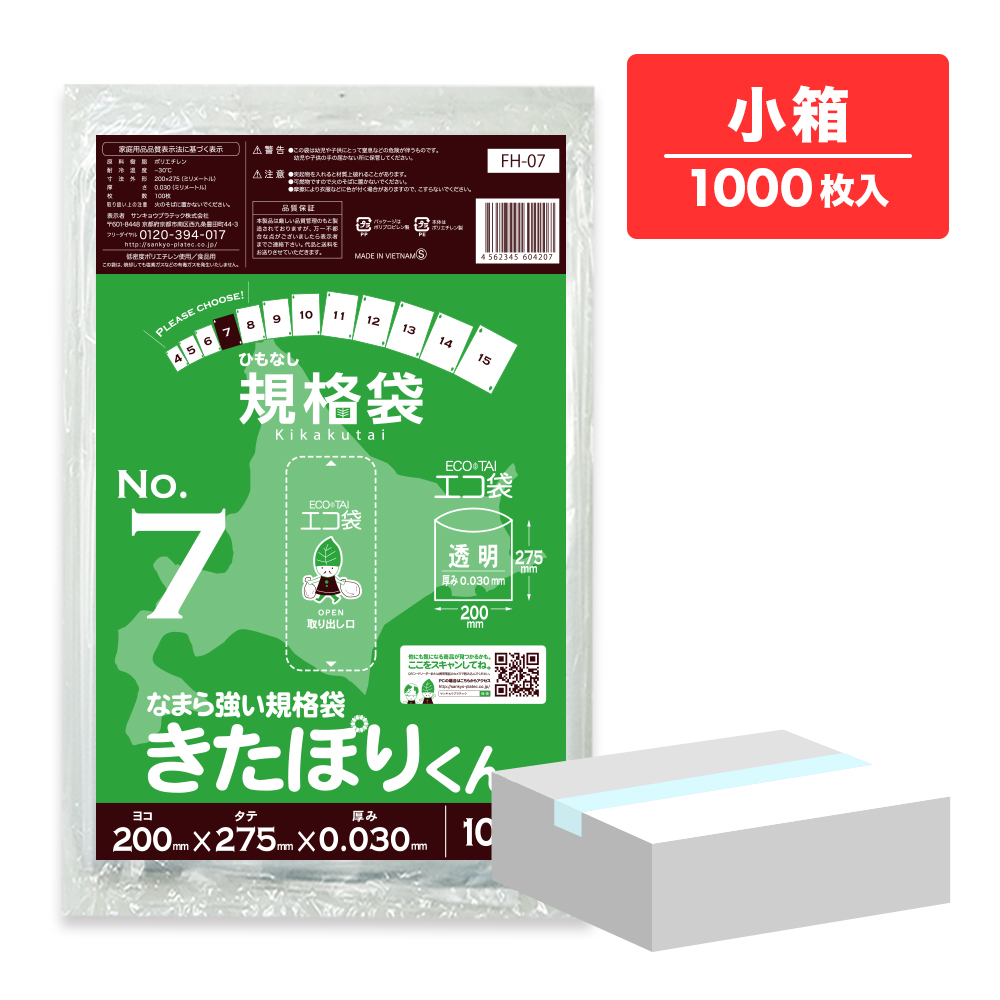 FH-07kobako きたぽりくん 北海道規格 ひもなし 規格袋 7号 0.030mm厚 透明 100枚×10冊