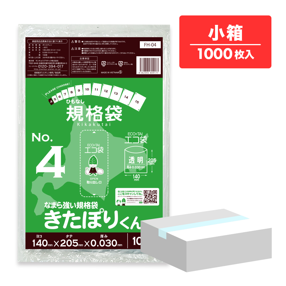 FH-04kobako きたぽりくん 北海道規格 ひもなし 規格袋 4号 0.030mm厚 透明 100枚×10冊