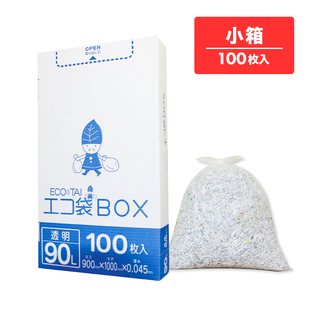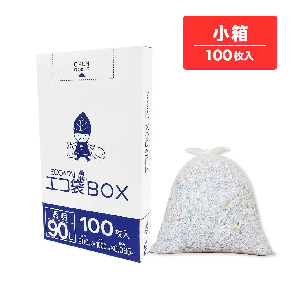 ごみ袋 箱タイプ 90リットル 薄手 透明 90x100cm 0.035mm厚 100枚 HKU-980kobako ポリ袋 ゴミ袋 平袋 BOX 90l クリア 業務用