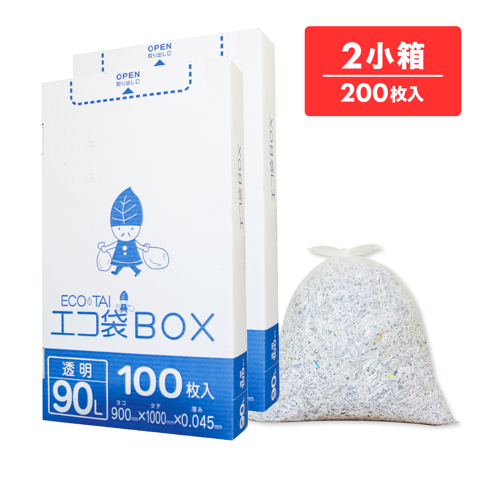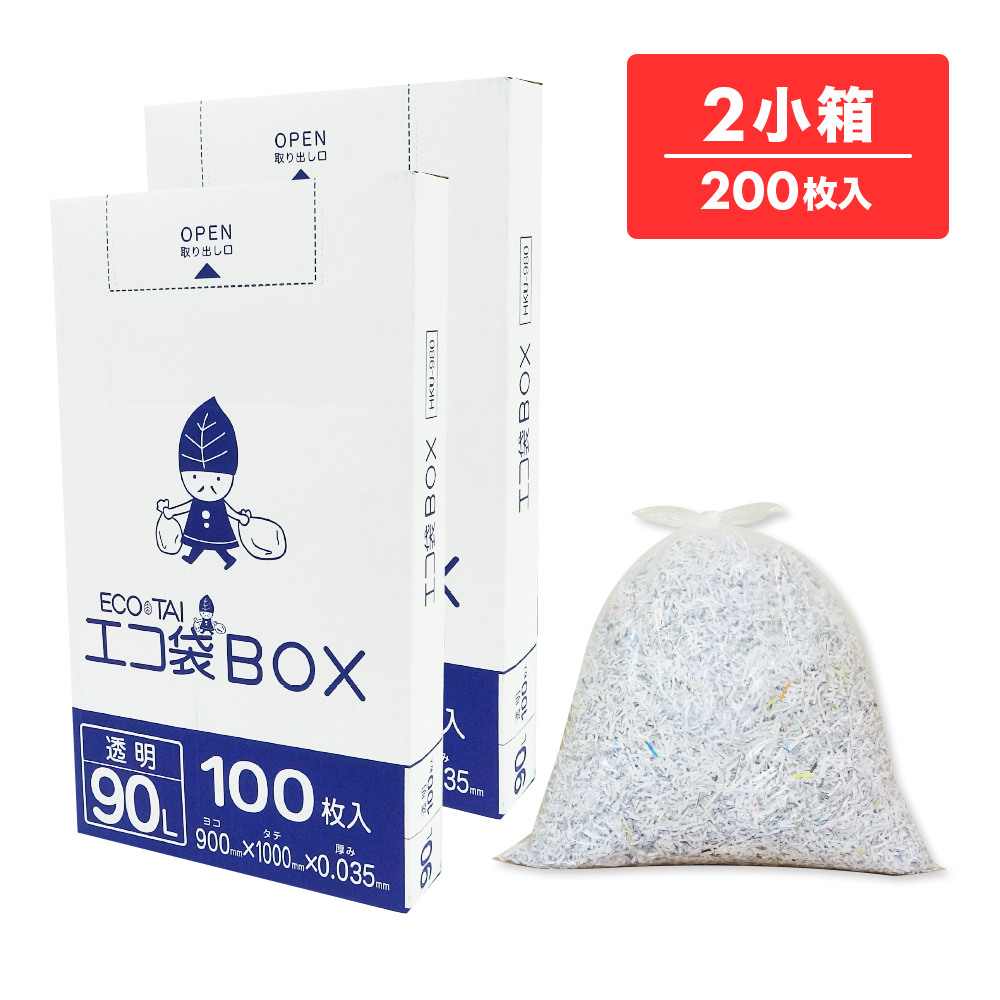 ごみ袋 箱タイプ 90リットル 薄手 透明 90x100cm 0.035mm厚 100枚x2小箱 HKU-980-2kobako ポリ袋 ゴミ袋 平袋 BOX 90l クリア 業務用