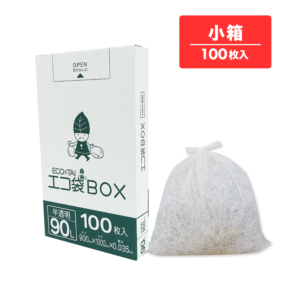 ごみ袋 箱タイプ 90リットル 薄手 半透明 90x100cm 0.035mm厚 100枚 HKU-990kobako ポリ袋 ゴミ袋 平袋 BOX 90l ホワイト 業務用