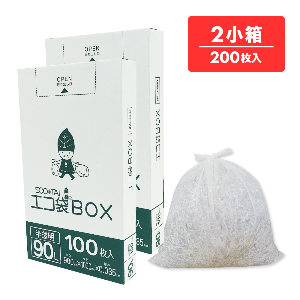ごみ袋 箱タイプ 90リットル 薄手 半透明 90x100cm 0.035mm厚 100枚x2小箱 HKU-990-2kobako ポリ袋 ゴミ袋 平袋 BOX 90l ホワイト 業務用