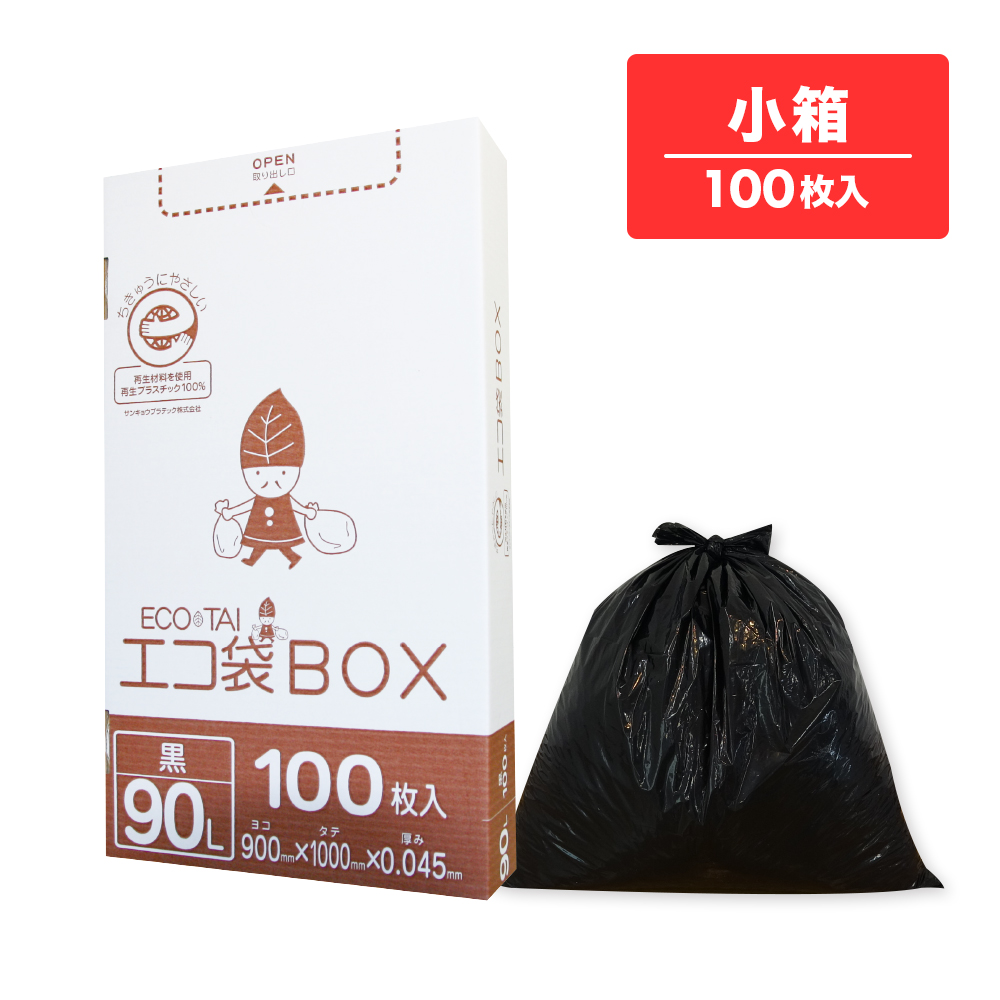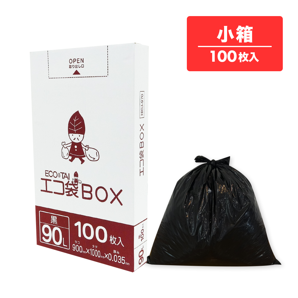 ごみ袋 箱タイプ 90リットル 黒 90x100cm 0.045mm厚 100枚 HK-970kobako / 業務用 ポリ袋 ゴミ袋 平袋 BOX 90l ブラック