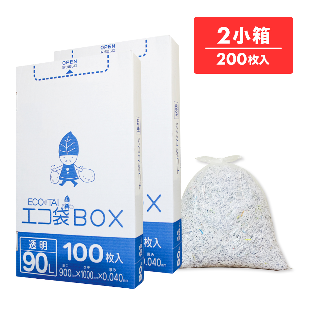 ごみ袋 箱タイプ 90リットル 透明 90x100cm 0.040mm厚 100枚x2小箱 HK-930-2kobako / 業務用 ポリ袋 ゴミ袋 平袋 BOX 90l クリア
