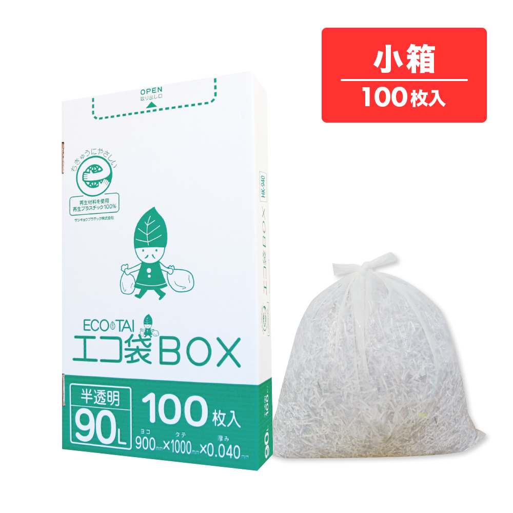 ごみ袋 箱タイプ 90リットル 半透明 90x100cm 0.040mm厚 100枚 HK-940kobako / 業務用 ポリ袋 ゴミ袋 平袋 BOX 90l ホワイト