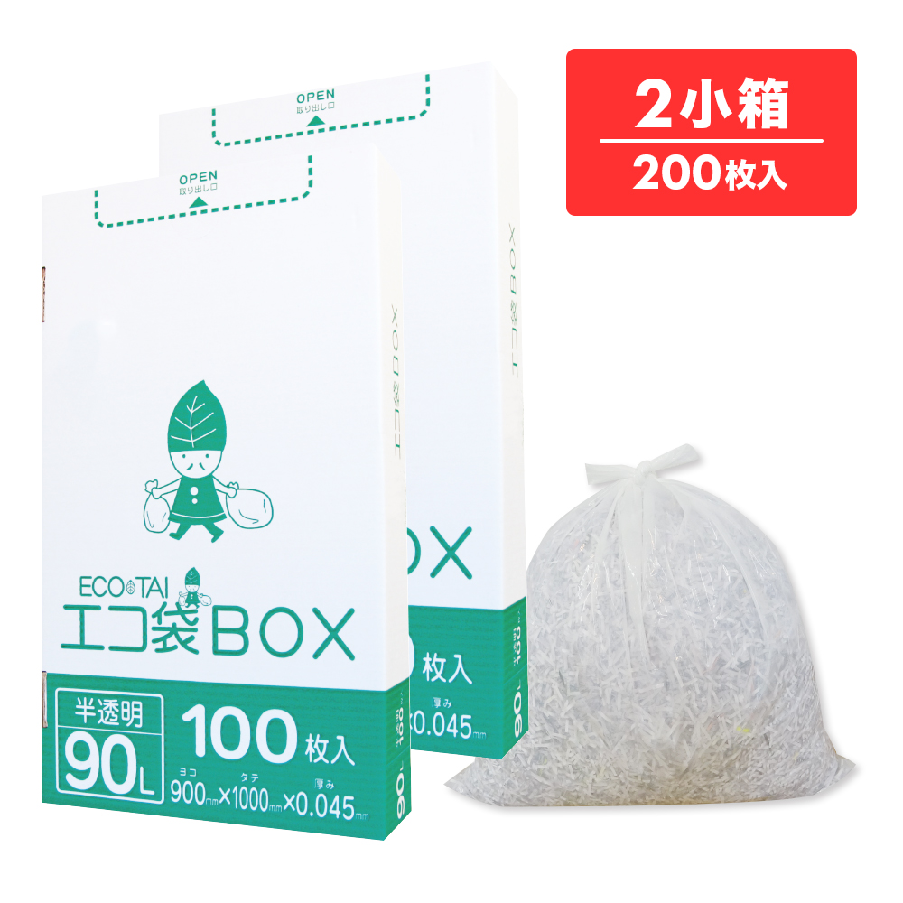 ごみ袋 箱タイプ 90リットル 半透明 90x100cm 0.045mm厚 100枚x2小箱 HK-990-2kobako / 業務用 ポリ袋 ゴミ袋 平袋 BOX 90l ホワイト