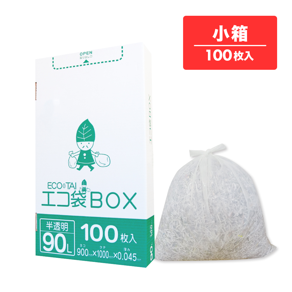 ごみ袋 箱タイプ 90リットル 半透明 90x100cm 0.045mm厚 100枚 HK-990kobako / 業務用 ポリ袋 ゴミ袋 平袋 BOX 90l ホワイト