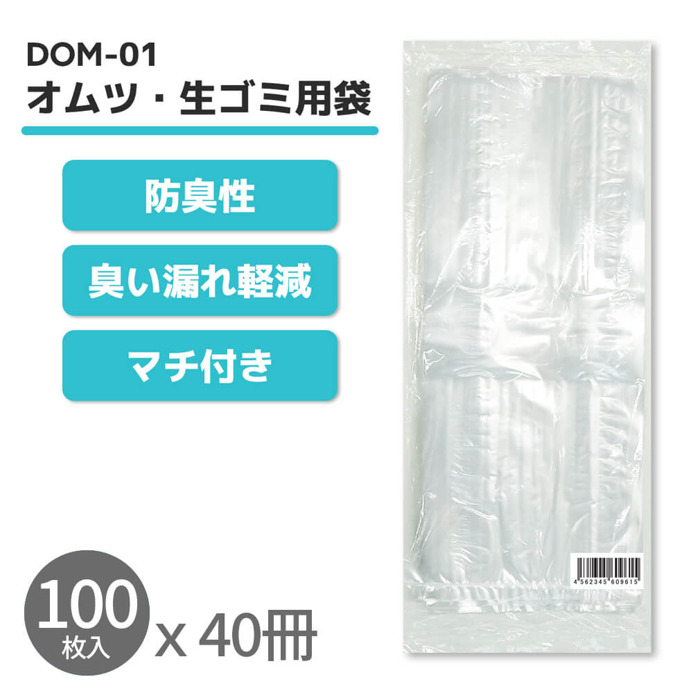 マチ付 オムツ・生ごみ用袋 透明 23cmx38cm 0.025mm厚 100枚x40冊 DOM-01 介護 オムツ ペット いぬ ネコ ウンチ トイレ シーツパッド 生ごみ 処分 ニオイ デオドラント 非常 備蓄 持ち運び 携帯用