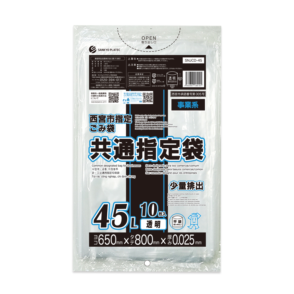 西宮市指定事業系ごみ袋 少量排出 共通指定袋 45リットル 透明 65x80cm 0.025mm厚 10枚 SNJCD-45bara ポリ袋 ゴミ袋 平袋 西宮市 可燃 業務用 45l クリア