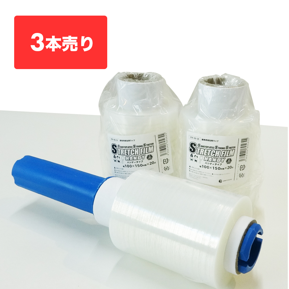 ストレッチフィルム ハンディタイプ 100mm幅x150m 0.020mm厚 透明 3本 STR-100-20-b3 ハンディラップ 引越し 荷造り クリア