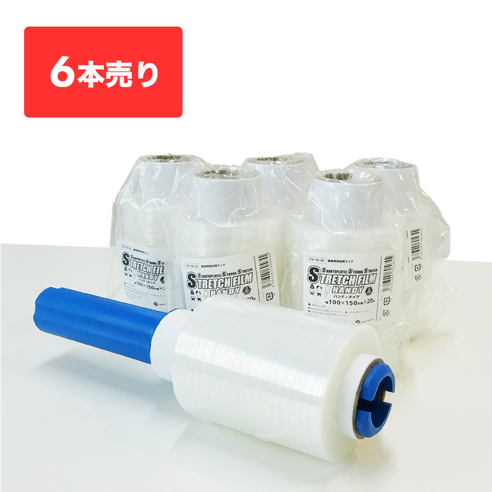 ストレッチフィルム ハンディタイプ 100mm幅x150m 0.020mm厚 透明 6本 STR-100-20-b6 ハンディラップ 引越し 荷造り クリア
