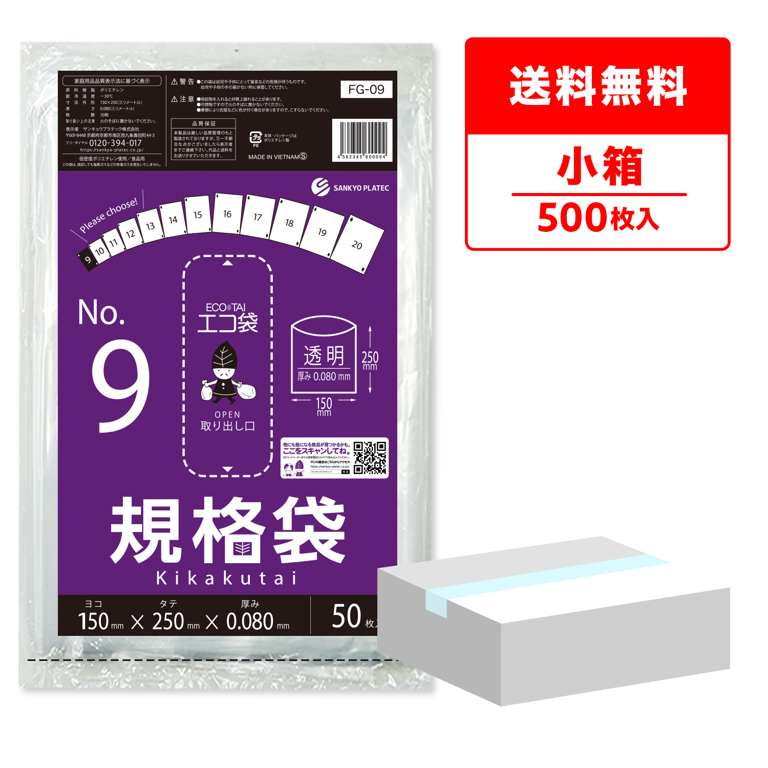 規格袋 9号 極厚 透明 15x25cm 0.080mm厚 50枚x10冊 FG-09kobako 食品検査適合 食品対応 袋 保存袋 食品用 検食 厨房 保育園 仕分け 梱包 保管 工場 No.9 クリア 業務用 送料無料