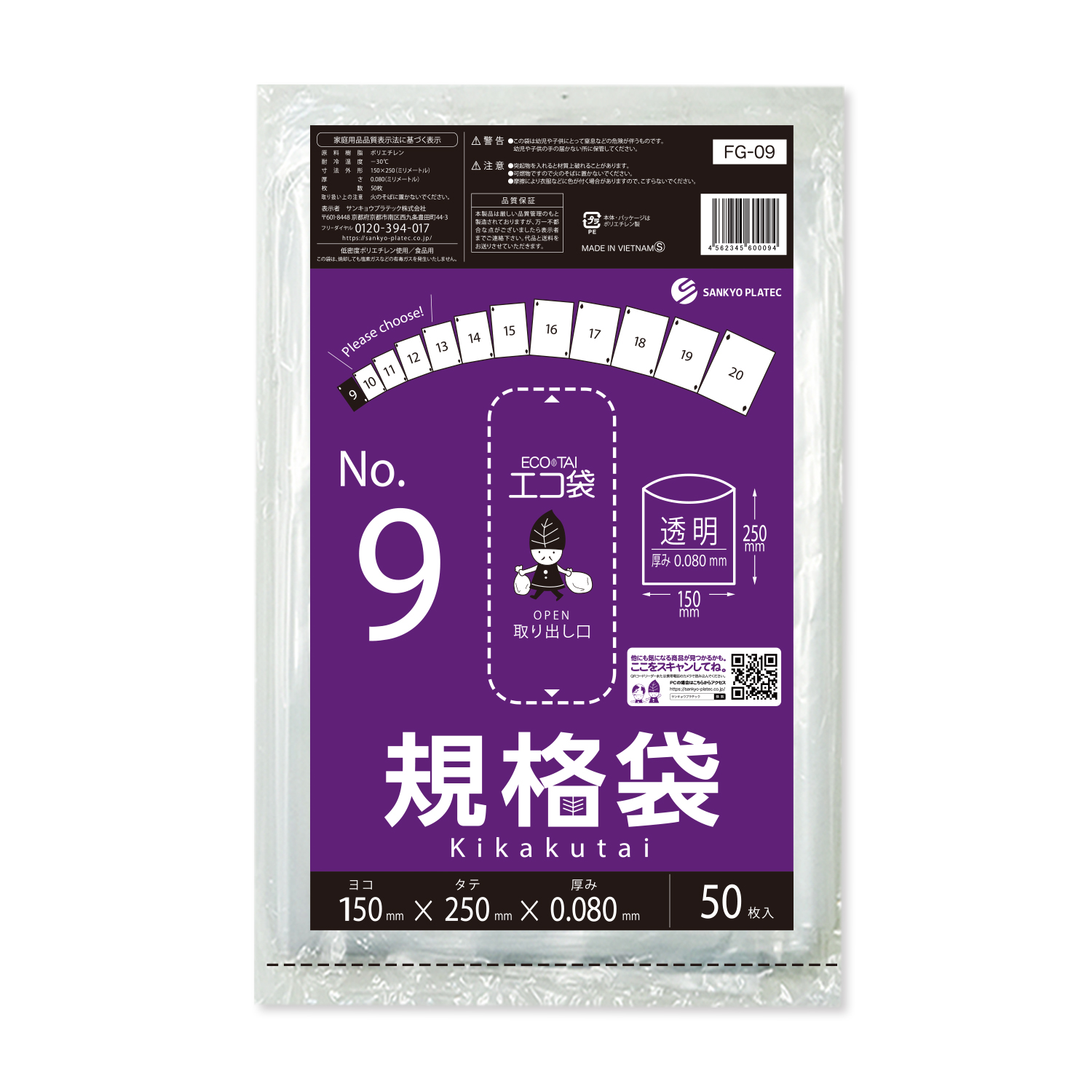 規格袋 9号 極厚 透明 15x25cm 0.080mm厚 50枚 FG-09bara 食品検査適合 食品対応 袋 保存袋 食品用 検食 厨房 保育園 仕分け 梱包 保管 工場 No.9 クリア 業務用