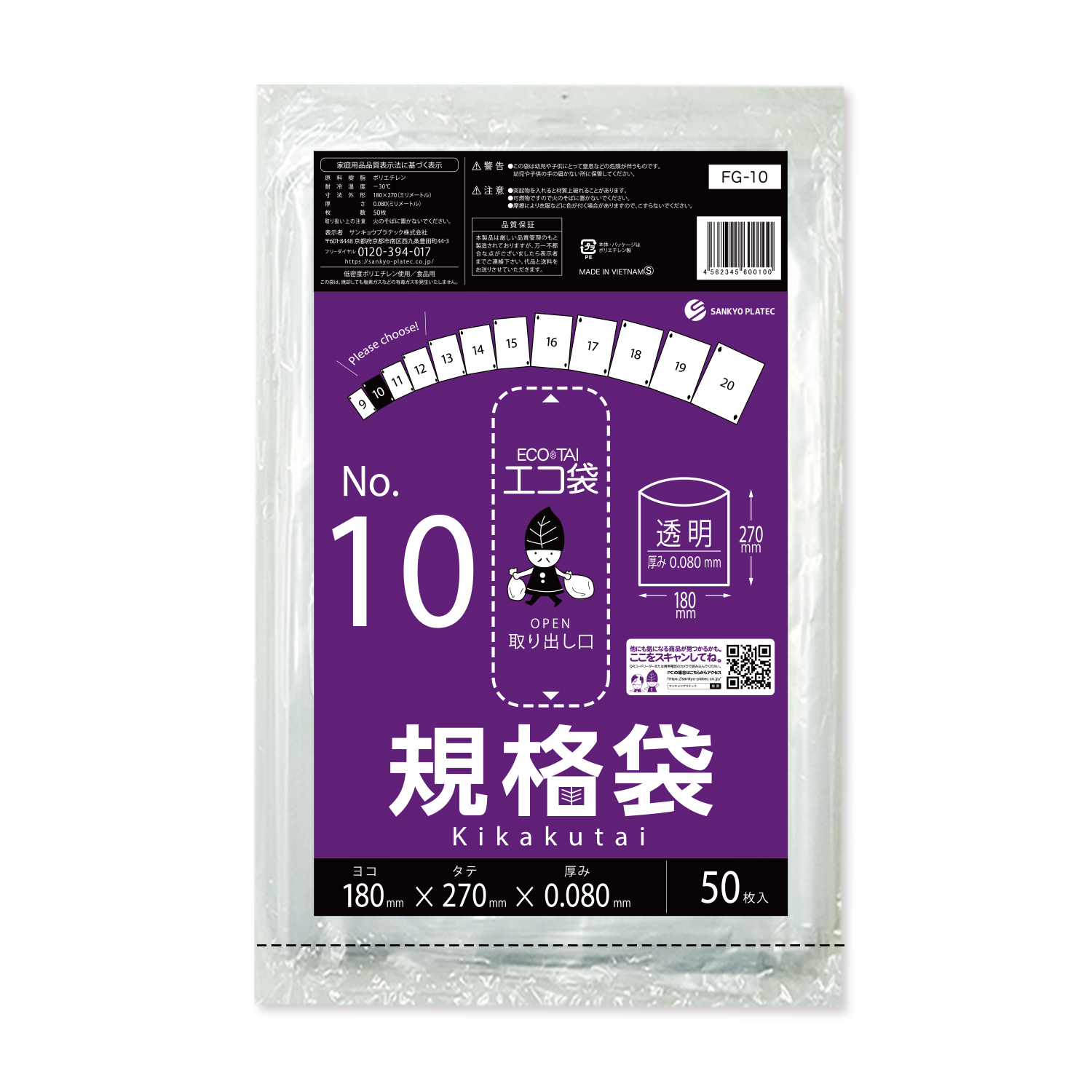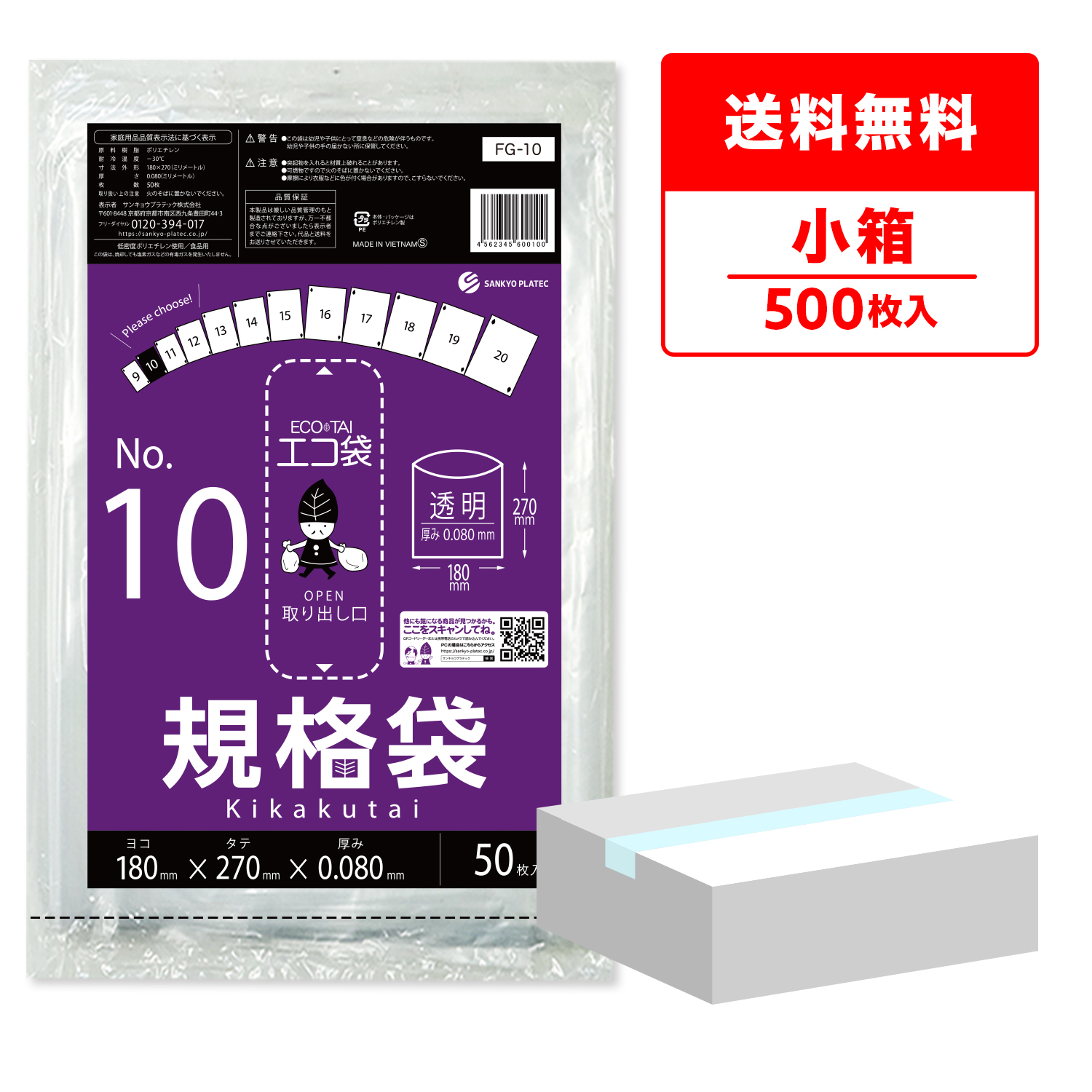規格袋 10号 極厚 透明 18x27cm 0.080mm厚 50枚x10冊 FG-10kobako 食品検査適合 食品対応 袋 保存袋 食品用 検食 厨房 保育園 仕分け 梱包 保管 工場 No.10 クリア 業務用 送料無料