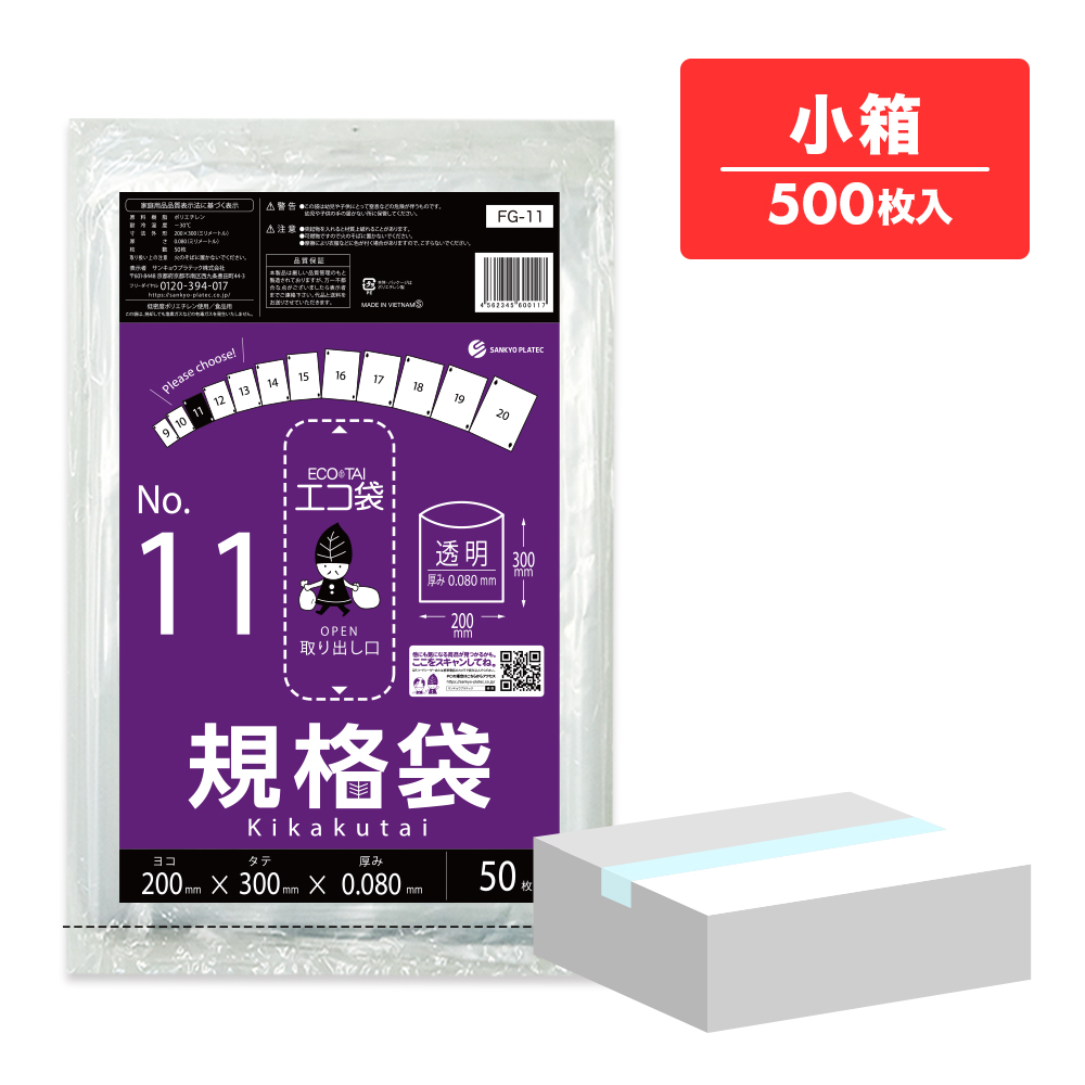 規格袋 11号 極厚 透明 20x30cm 0.080mm厚 50枚x10冊 FG-11kobako 食品検査適合 食品対応 袋 保存袋 食品用 検食 厨房 保育園 仕分け 梱包 保管 工場 No.11 クリア 業務用