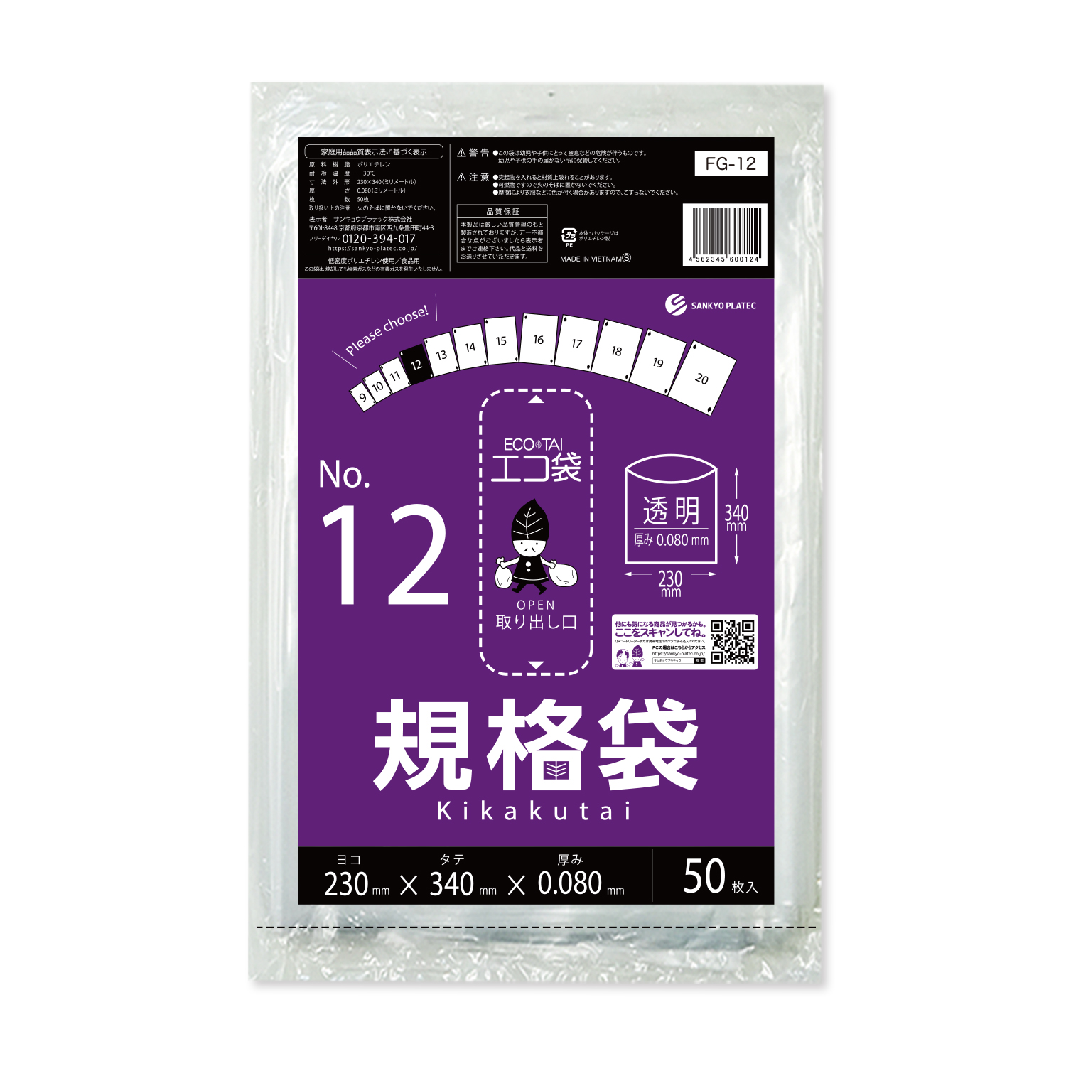 規格袋 12号 極厚 透明 23x34cm 0.080mm厚 50枚 FG-12bara 食品検査適合 食品対応 袋 保存袋 食品用 検食 厨房 保育園 仕分け 梱包 保管 工場 No.12 クリア 業務用