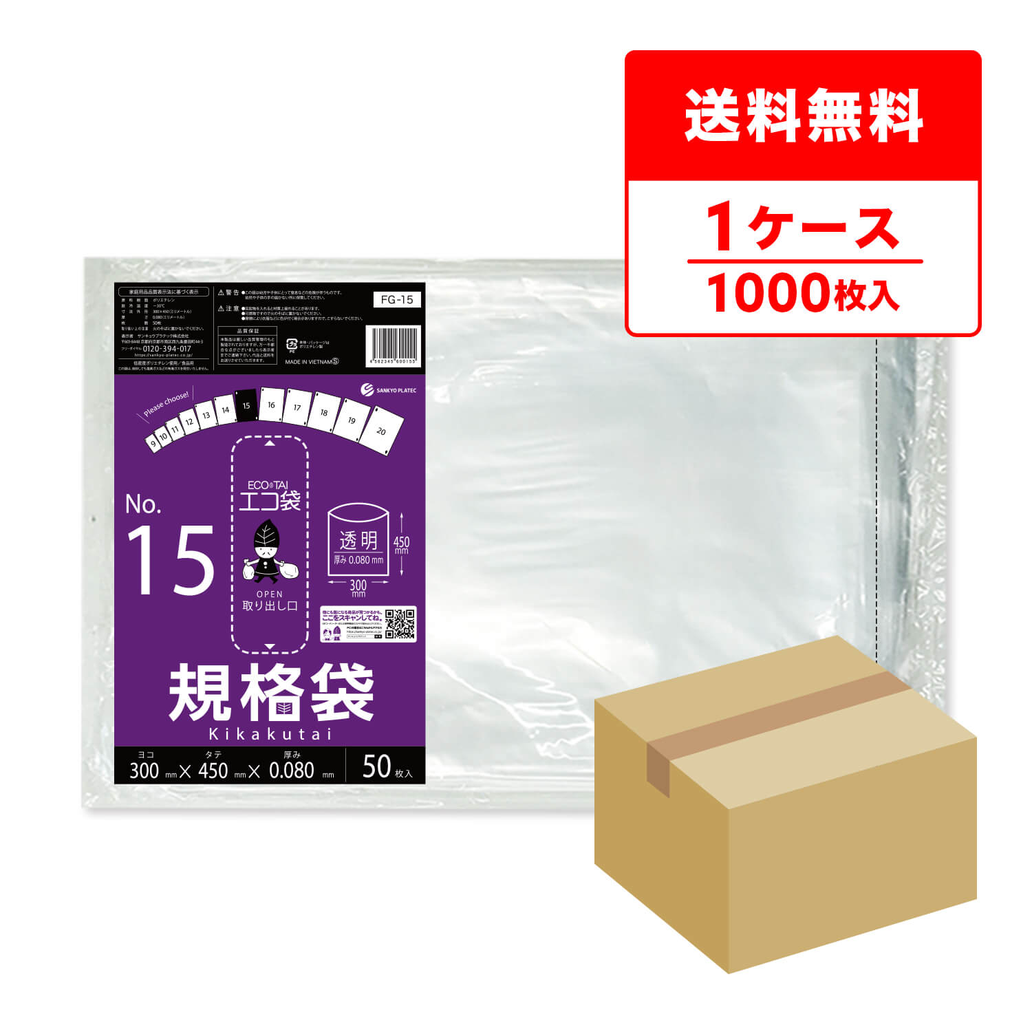 規格袋 15号 極厚 透明 30x45cm 0.080mm厚 50枚x20冊 FG-15 食品検査適合 食品対応 袋 保存袋 食品用 検食 厨房 保育園 仕分け 梱包 保管 工場 No.15 クリア 業務用 送料無料