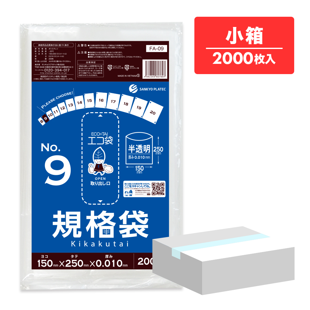 規格袋 9号 薄手 半透明 15x25cm 0.010mm厚 200枚x10冊 FA-09kobako 食品検査適合 食品対応 袋 保存袋 食品用 検食 仕分け 梱包 No.9 業務用
