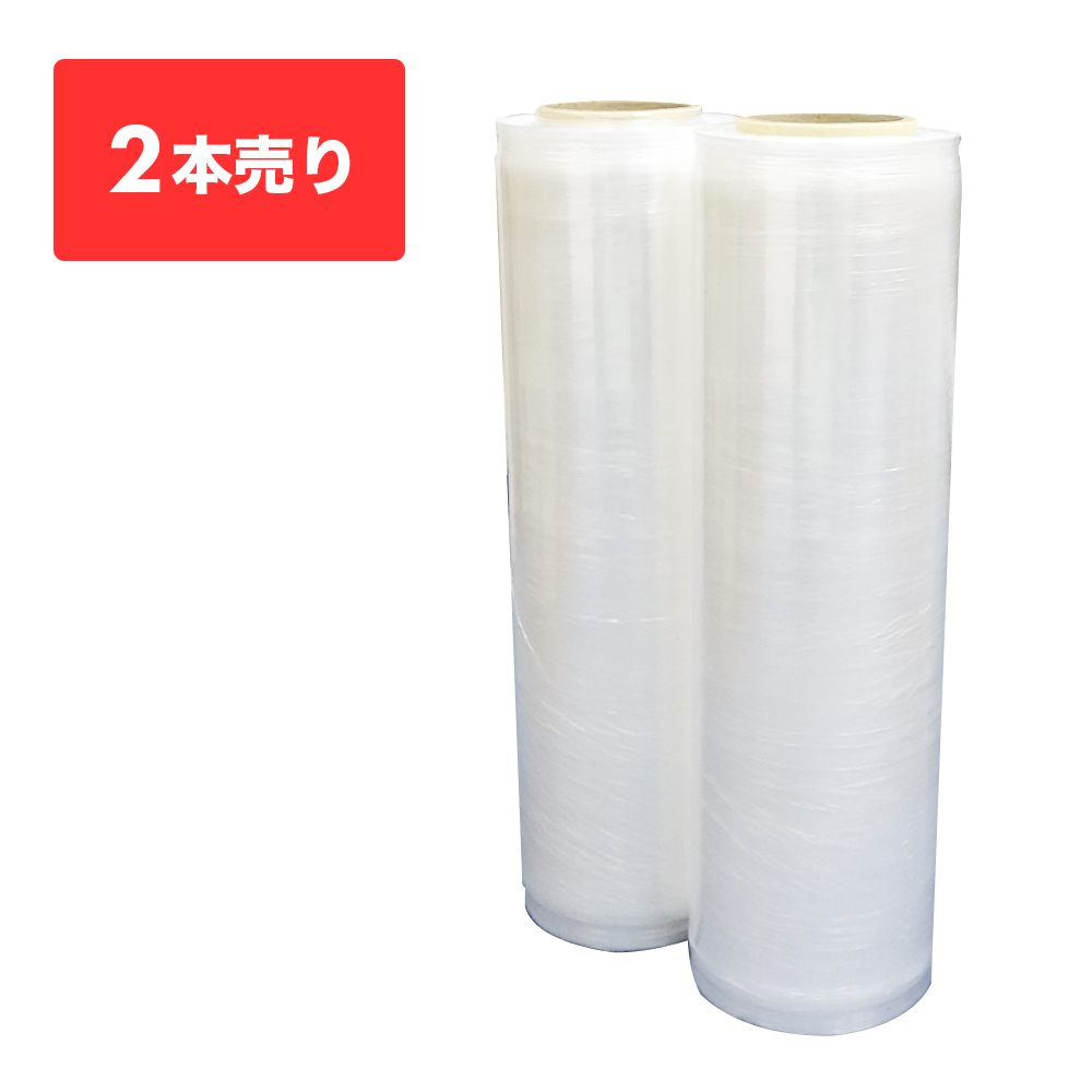 ストレッチフィルム エッジ強化タイプ 450mm幅x600m 0.008mm厚 透明 2本 STR-450-08E-b2 /梱包用フィルム 梱包ラップ 大型ラップ 手巻きタイプ クリア 業務用