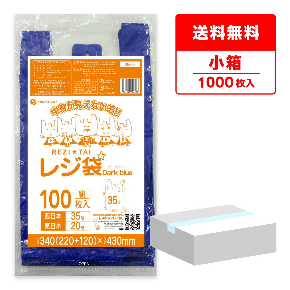 レジ袋 厚手 ダークブルー 西日本 35号 (東日本20号) ブロック有 紺 0.016mm厚 100枚x10冊 RB-35kobako /手さげ袋 買い物袋 袋 M 業務用 送料無料