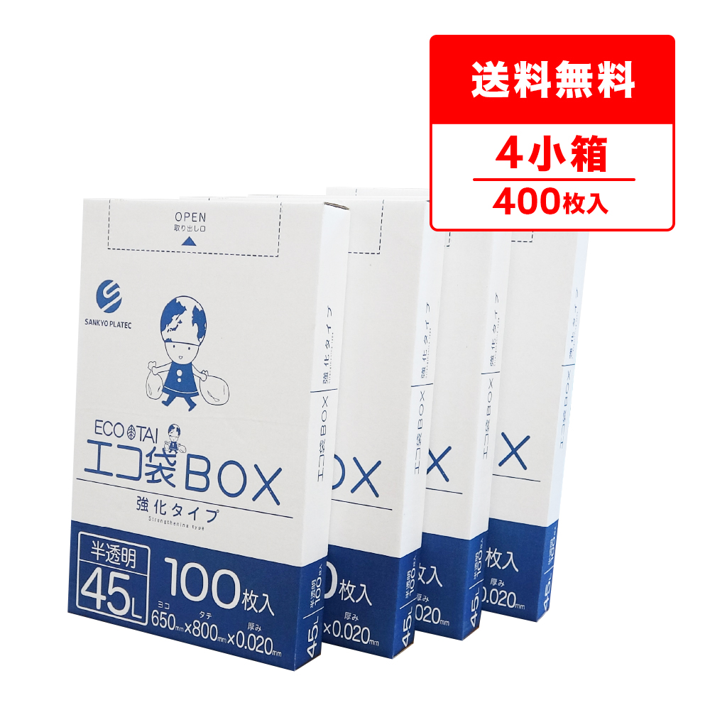 ごみ袋 箱タイプ 45リットル 半透明 65x80cm 0.020mm厚 100枚x4小箱 BX-535-4kobako/ ポリ袋 ゴミ袋 平袋 BOX 45l ナチュラル 業務用